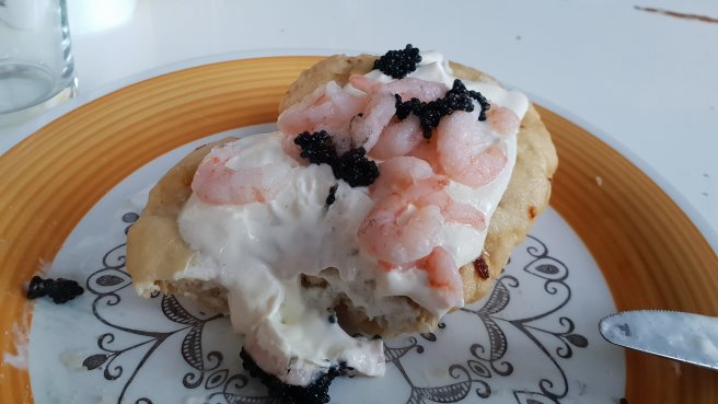 Maud bjöd även på langos! Försökte vara glad men det var svårt.