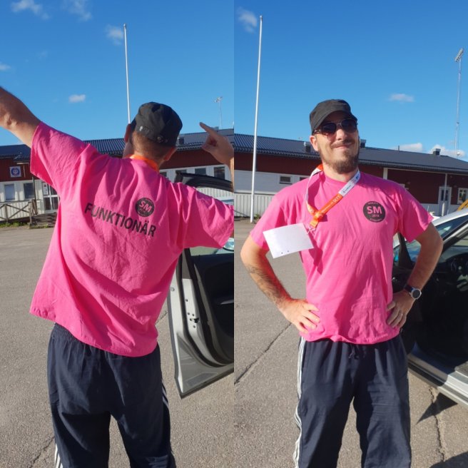 Fredagen började med besiktning där Johan var funktionär och kollade chip. Älskar rosa funkiströjan!