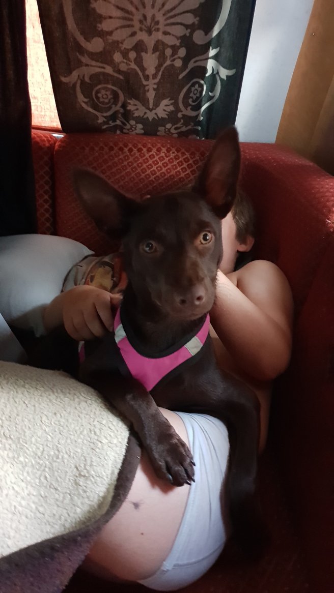 Avslutade med filmmys i husvagnen, Hippo tyckte hon kunde ligga i Lukas knä.