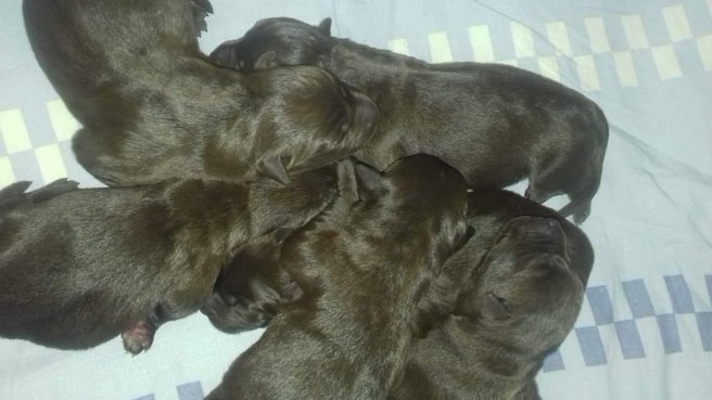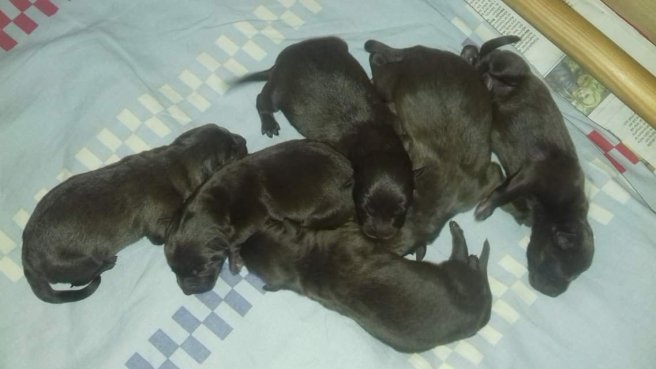 Cefeus I II kull är född! Inatt födde Besta 6 chokladpraliner, 4 tikar och 2 hanar.