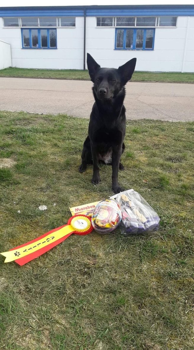 Harvey har med matte Emelie debuterat i lydnad med uppflyttning!