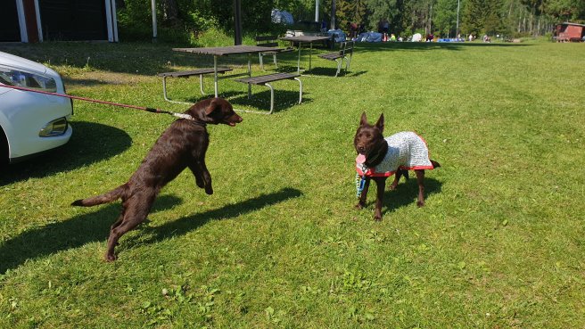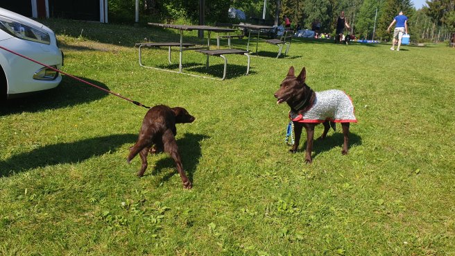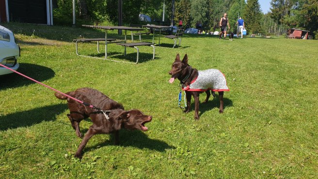 Jag visste att det skulle vara jättevarmt! Tog med vätskeersättning ordentligt med vatten, salta chips, vattenmelon mm. Och tog hand om både mig själv och hundarna inför och efter loppen. Tierps BK hade gjort iordning baljor med vatten så hundarna kunde blöta tassarna.