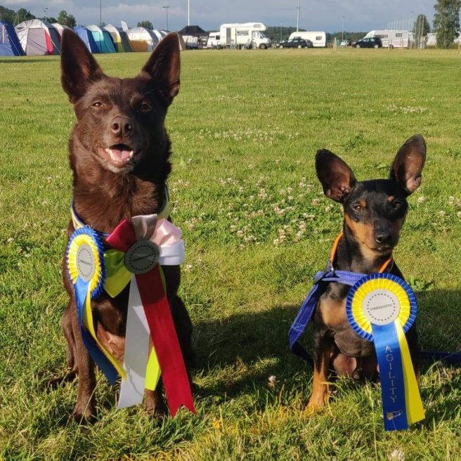 Maia och Anita har plockat 3 pinnar på agilitybanan med 2 vinster och en 2 plats!
