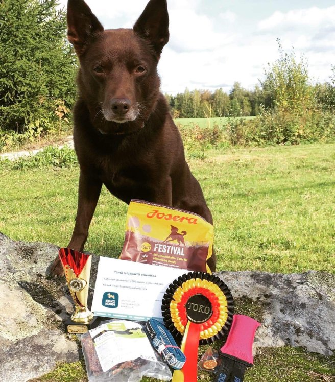 Matte Johanna: Uffe tog idag äntligen sista första priset i segrarklass (heter klass 2 i Sverige kanske?) och för en vecka sen steg han även till klass 3 i rallylydnad. Så nu heter han LP1 LP2 LP3 RLDN RLDF FI UCH BH TLNJW-13 Cefeus Uffe II. Jag är så himla tacksam för denna arbetsmyra till hund. 😍