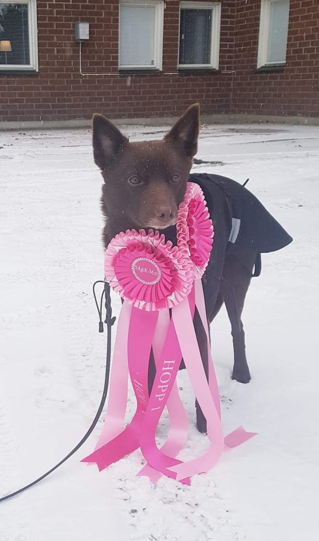 Matte Eva: Fame och jag har tävlat agility i Söråker i helgen. Mycket att glädjas åt. Inga diskade lopp. Tre nollade lopp, varav ett med uppflyttningspinne och två vinster. Mest nöjd var jag med sista hopploppet idag som flöt på riktigt bra.