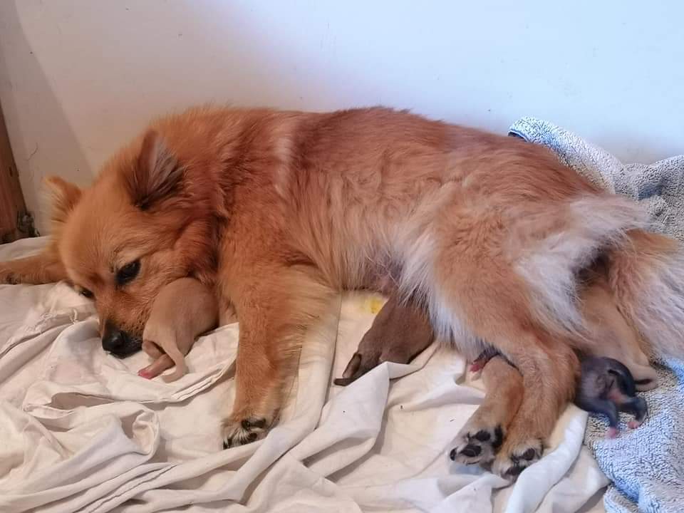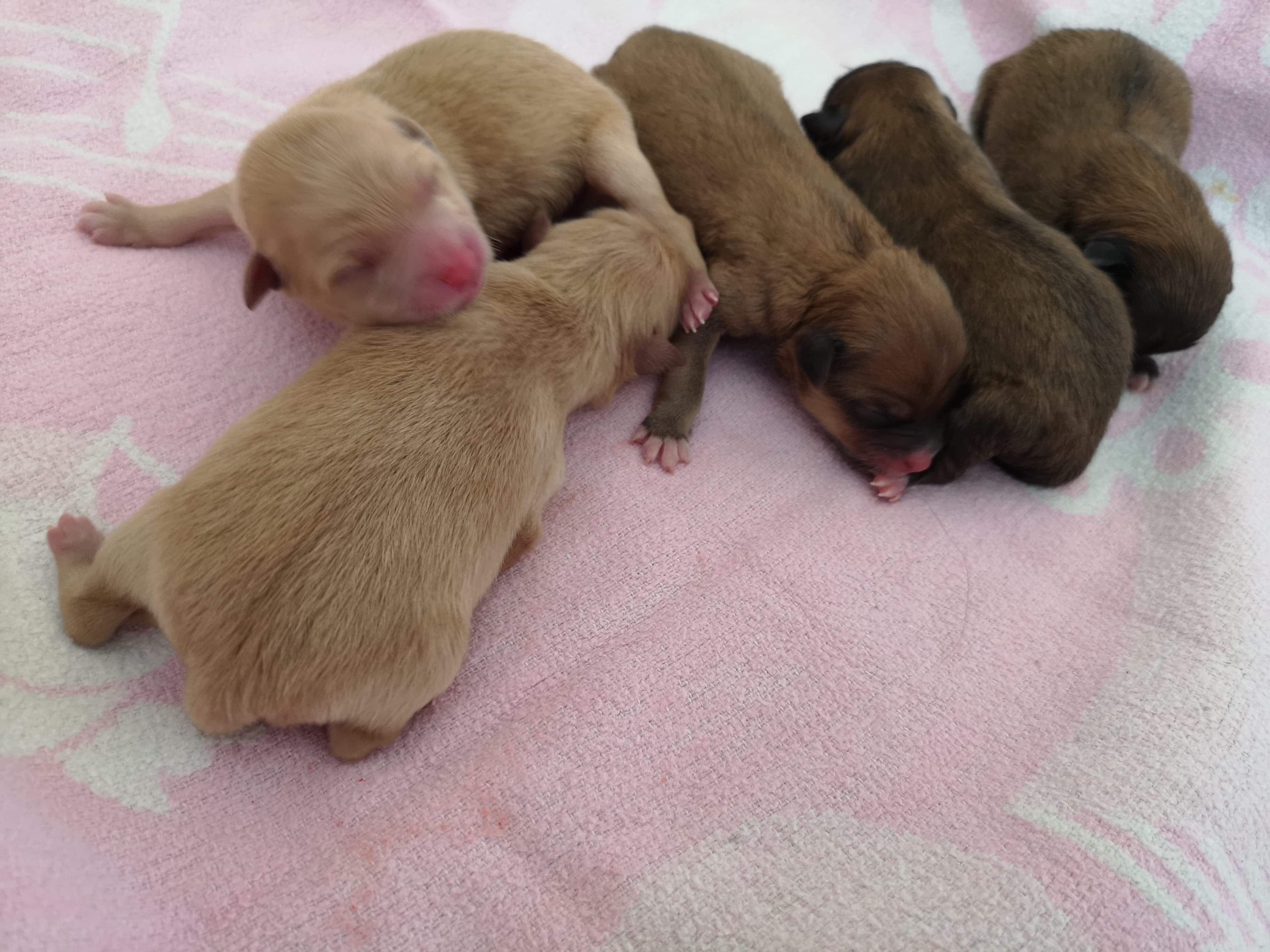 Igår kom dom, på dygn 59. Fem fina valpar. Raven var så duktig och lugn, och hon sköter dom så fint .