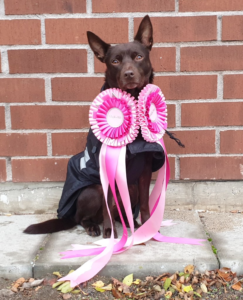 Rosa rosefetter i Timrå november 7, 2020 ~ kelpiecarro Hippo nollade båda hopp 2 loppen den 25 oktober 🎉 och plockade sin andra pinne i klassen Elmin fick även han en snygg rosefett Nu är alla agilitytävlingar inställda för resten av året ❣ vi tränar på, håller avstånd och hoppas kunna tävla igen nästa år Dela detta: Klicka för att dela på X (Öppnas i ett nytt fönster) X Klicka för att dela på Facebook (Öppnas i ett nytt fönster) Facebook Gilla Laddar in … Relaterade