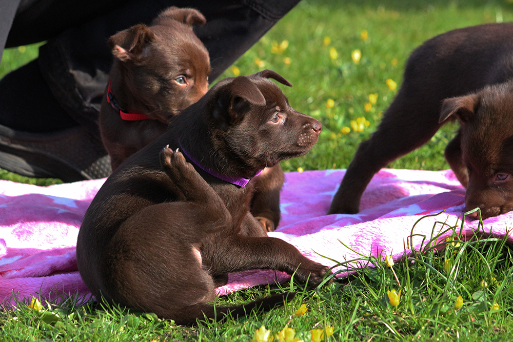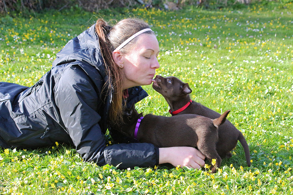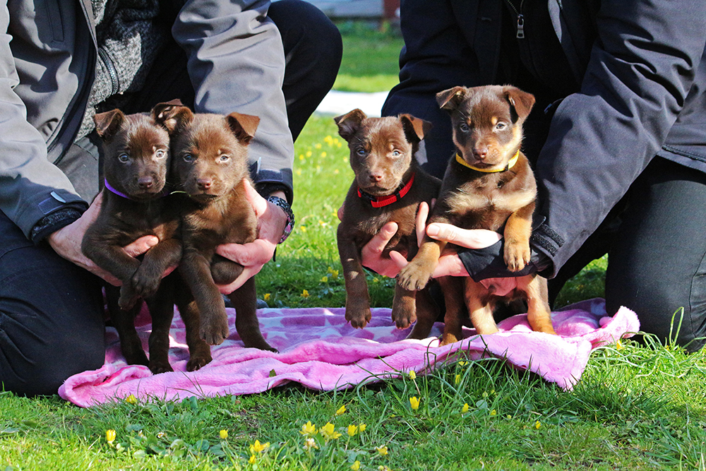 Kira är den vuxna tiken på valpbilderna, alltså valparnas mormor ❤ hon tyckte det var helt ok att träffa sina barnbarn. Valparna undrade varför hon inte hade någon mjölk att bjuda på