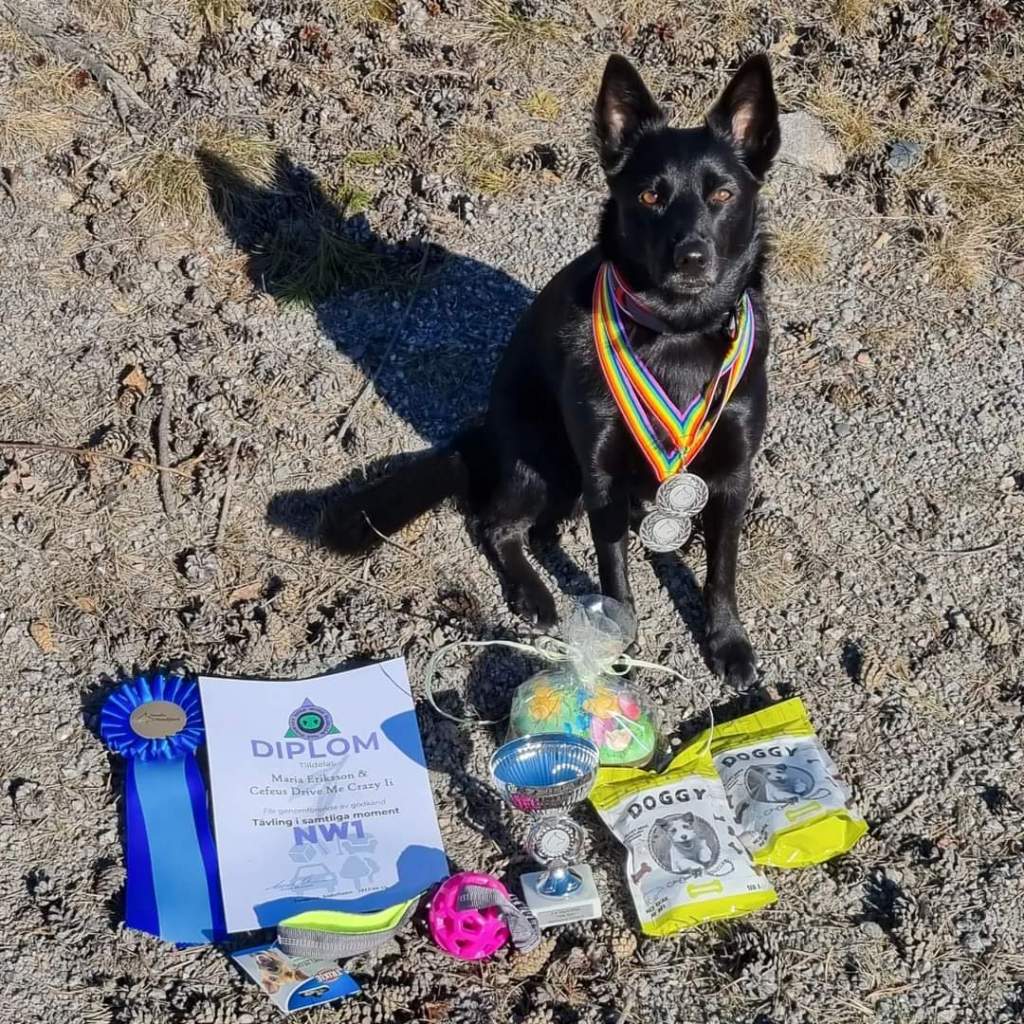 Matte Maria: Lilla fröken Driva är numera uppflyttad till TSM 2.🤩 Snabb som en vessla tog hon 100p och diplom i TSM 1 med en fin silvermedalj i totalen. Hon belönades också med silvermedalj i både fordonssök och behållarsök. Det gäller dock för matte att hänga med när hon markerar i en millisekund 😅😅 För allt som Driva gör, gör hon i raketfart. 🌟🎉👏🤩