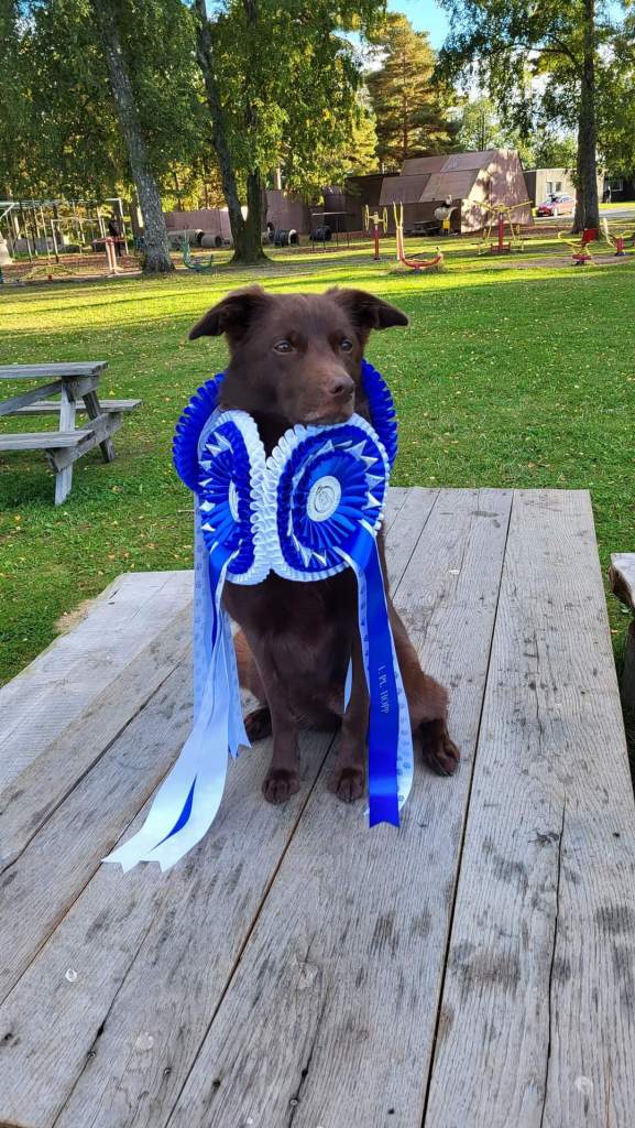 Nå mangler vi bare ett napp til AG2 og ett til hopp3. Hun er en fryd å løpe med og vi koser oss veldig på banen! I tillegg er hun lett å ha med seg på store stevner, hun har så fint fokus og jobber på uten å la seg distrahere. Hun kan også ligge fint og slappe av ved siden av banen uten å stresse over alt som skjer rundt henne.